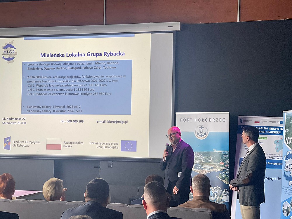 W dniu 5 grudnia 2025 roku odbyła się konferencja zorganizowana przez Zachodniopomorską Sieć Lokalnych Grup Działania dotycząca realizacji Lokalnych Strategii Rozwoju w województwie zachodniopomorskim w ramach Programu Fundusze Europejskie dla Rybactwa 2021-2027.